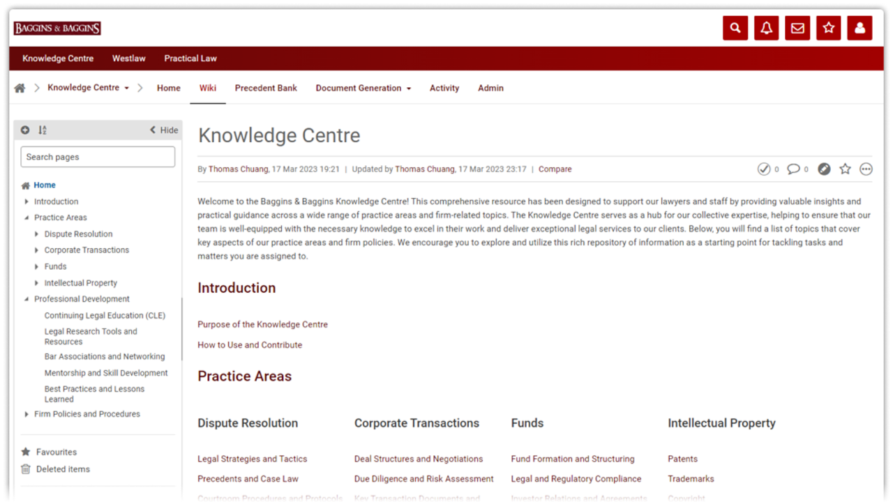 - 协作型知识中心:为知识管理团队打造集中式平台,分享法律洞察与实务资源,促进律所内部协作。