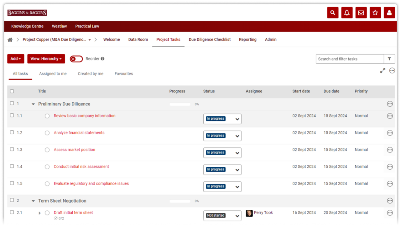 并购以外的交易法律工作涵盖广泛的服务,包括合同起草、房地产交易、知识产权许可、合资企业和融资协议。这些交易对于促进业务运营、保护客户利益和确保遵守法律标准至关重要。文件管理系统有助于组织和集中管理与每笔交易相关的大量文档。它们可以快速检索文件、进行版本控制,并实现法律团队与客户之间的无缝协作。通过简化工作流程,文件管理系统可以确保效率、降低错误风险并保持对监管要求的合规性,最终提高公司有效处理复杂交易的能力。