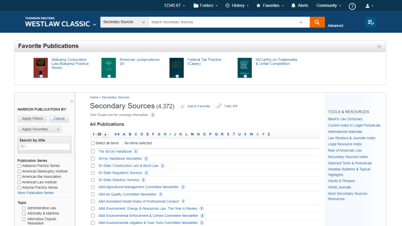 获取无与伦比的资源收藏,包括Wright & Miller联邦实践和程序、Corpus Juris Secundum (C.J.S.)、Causes of Action (COA)、完整的美国法律大全(Am Jur Library)和完整的法律重述大全。