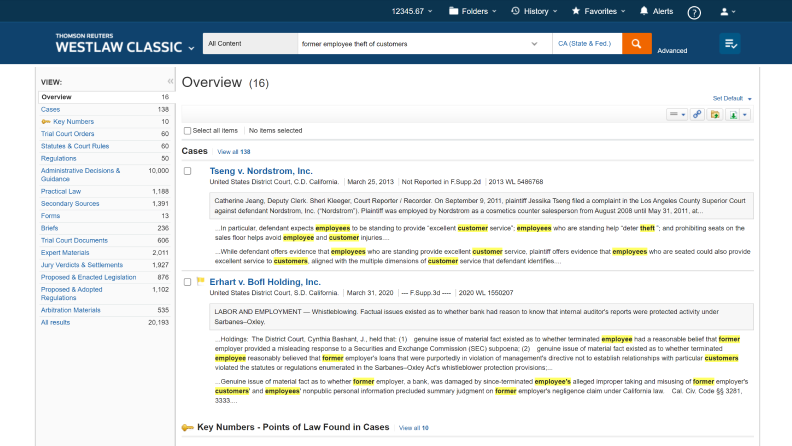 作为Westlaw的法律搜索引擎,WestSearch利用独特的编辑内容来寻找与所搜索的法律概念高度相关的资料。通过WestSearch,您可以更快地找到准确的答案,并以信心完成您的研究。
